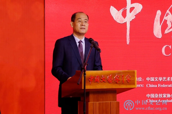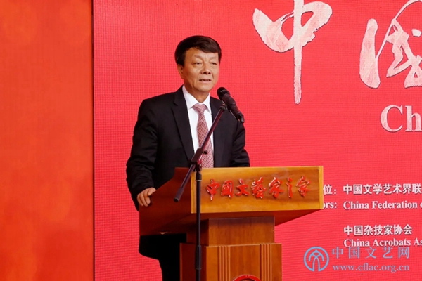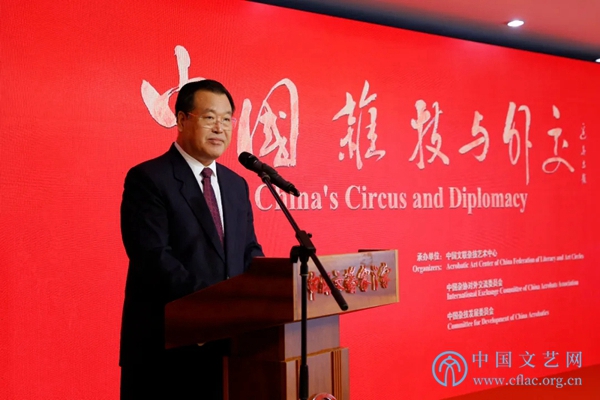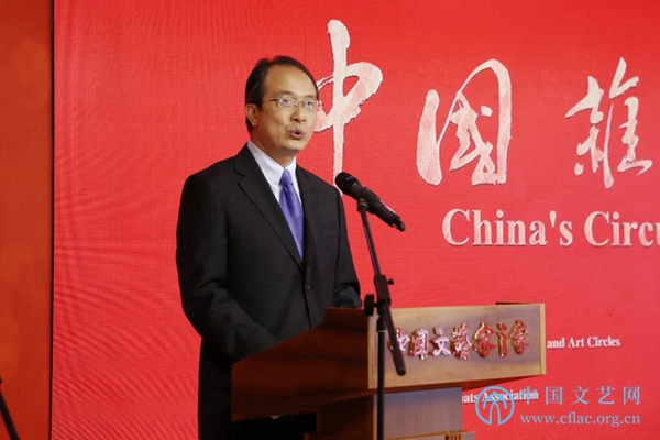 洪磊回顾了自新中国成立之初至今,杂技在外交中发挥的重要作用,指出在中国走向世界的进程中,在中国向各国人民展现中华友好情谊的努力中,中国杂技与中国外交同行。杂技以国之瑰宝的文化特色,为各国人民喜闻乐见,成为沟通中外的重要艺术桥梁,让世界感知一个精彩纷呈、优美智慧、可亲可爱的中国。在中国杂技人的身上,我们看到了与时俱进、追求卓越、艰苦奋斗、自强不息的精神。我们正在与世界各国构建人类命运共同体,而要构建这一命运共同体,人类的相知和理解是基础,在这之中,中国杂技一定会发挥重要作用,在中国大国外交徐徐展开的平台上,中国杂技一定会为世界构建一个美美与共的未来作出重要贡献,为国争光,与世界结缘。