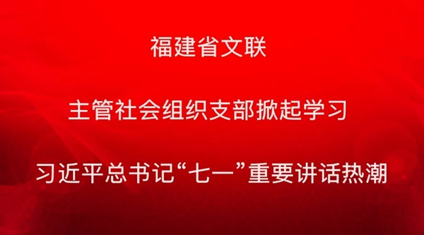 福建省文联主管社会组织支部掀起学习习近平总书记“七一”重要讲话热潮。福建省文联行业党委号召所属各支部学习传达总书记“七一”重要讲话精神。各社会组织支部积极响应行业党委的号召,带领社会组织内文艺工作者采取集中收听收看和发放文字材料的方式组织学习,并召开支部委扩大会,交流学习体会。