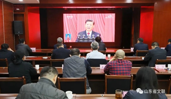 山东省文联组织集中收看党的二十大开幕会盛况,聆听习近平总书记代表第十九届中央委员会向大会作的报告。大家一致认为,习近平总书记的报告令人深受鼓舞、倍感振奋,要认真学习、深刻体悟、抓紧落实,为山东文艺事业发展努力作出新的贡献。