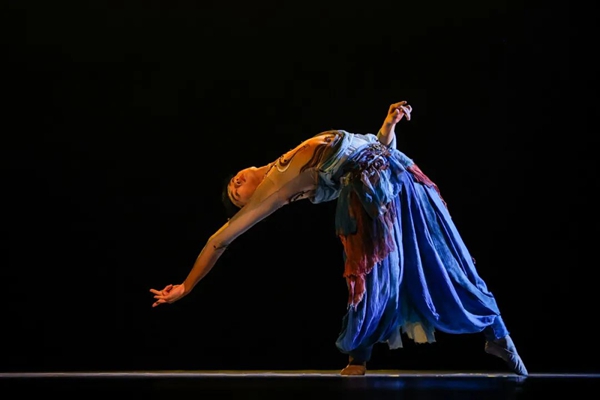 男子独舞《北魏飞天壁画印象》拉开展演的帷幕。在展演第一篇章,《龟兹·观香》《遥远的声音》《春之萌》《原上草》《尘世闲游》和《天鹅之死》等作品,在东方神韵与中西映照中书写生命情怀与时代脉动。
