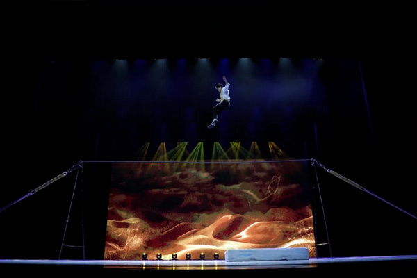 紧跟时代步伐,将杂技与当代科技进步与社会生活相结合,讲述崭新的中国故事,是青年杂技健儿们不懈努力的“当下进行时”。杂技《逐梦空天——男女集体爬杆》展现宇航员们在狭小的太空舱中的工作场景,爬杆技巧恰到好处地表现了失重状态与漂浮感,致敬在航天路上不断追寻的中国航天人。杂技《扬帆追梦·浪船》中道具设计先进,双浪桥摆动翻转,似一艘坚不可摧的大船扬帆远航,演员们如银鱼般腾空飞跃,尽显乘风破浪不畏艰险的英雄气概。杂技《一片羽毛——双人吊子》中借助悬空8米的高空吊子,两位演员幻化为鸟儿,演绎飞翔的决心与不离不弃的情义,也传递出生态环保理念。杂技《凌云——倒立技巧》中颇具科技感的道具与演员柔美的倒立技巧完美配合,彰显出新时代青年积极向上追逐梦想的凌云之志。
