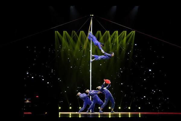 杂技《逐梦空天——男女集体爬杆》