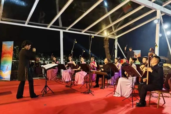 音乐会由中国著名指挥家、中央音乐学院教授陈冰协同中国国家级音乐类专业奖项——中国音乐金钟奖评委和获奖者姜克美、宋心馨、江洋、高白、张倩渊以及荣获世界著名音乐奖项的陈曦等音乐家担纲,由中国中央音乐学院民族室内乐团同巴西山河文化乐团联袂演出。面对热情的巴西观众,中国音乐家们倾情奉献,以高超水准和娴熟技艺演绎了《山丹丹开花红艳艳》《百鸟朝凤》《花梆子》《我和我的祖国》等极具民族特色和东方韵味的经典曲目。巴方乐团深情演奏了两国经典曲目《我爱你,中国》和《飞机桑巴》。熟悉的旋律在人群中引起共鸣,赢得了一阵阵潮涌般的掌声。夜幕低垂,海风徐徐,演出在热烈欢庆的气氛中取得圆满成功。