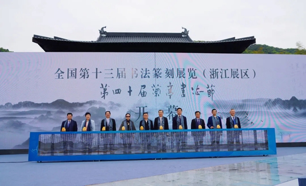 徐永军、叶正波、孙晓云、李昕、温暖、施惠芳、范庆瑜、杨守卫、谭志桂、魏伟等共同为全国第十三届书法篆刻展览(浙江展区)、第四十届兰亭书法节启幕。