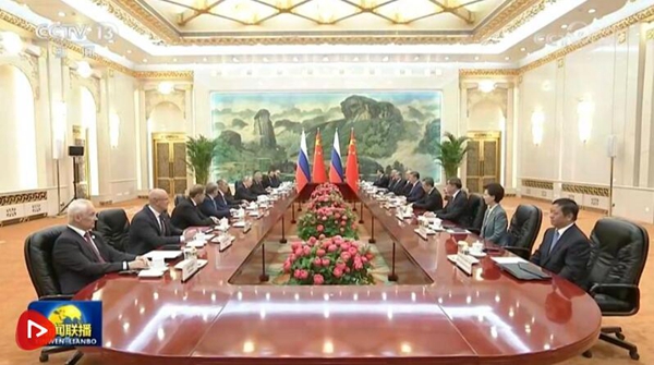 普京表示,俄中两国政府间合作机制运作良好,两国经贸、农业、工业、能源、互联互通等领域合作稳步发展。俄中关系的建立和发展,基于睦邻友好、相互尊重、助力各自国家发展等原则,经受住了各种考验。今天双方签署系列合作文件,表明双方继续深化拓展互利合作的决心。俄方愿同中方落实好《2030年前俄中经济合作规划》,办好今明年“俄中文化年”活动,加强欧亚经济联盟同共建“一带一路”倡议对接。明年将迎来世界反法西斯战争胜利80周年,俄中双方将举行庆祝活动。俄方赞赏中方在重大国际地区事务中秉持客观公正立场,愿同中方继续密切战略协作,坚定相互支持,促进世界多极化和国际关系民主化进程,推动俄中全面战略协作伙伴关系取得更多成果。