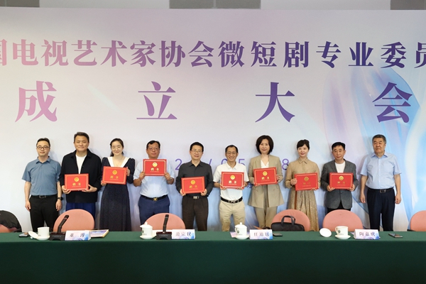 5月18日,中国电视艺术家协会微短剧专业委员会成立大会在北京召开。中国视协分党组书记、驻会副主席、秘书长范宗钗,国家广播电视总局网络视听节目管理司副司长任道远,中央广播电视总台影视剧纪录片中心原主任庄殿君,中国网络视听节目服务协会副会长陶嘉庆,浙江华策影视集团创始人、董事长赵依芳,吉林动画学院董事长、校长郑立国,来自有关部门、传媒集团、广播电视台及影视文化机构等单位的负责同志、艺术家、专家学者以及媒体记者等80余人出席会议。会议由中国视协分党组成员、副秘书长董涛主持。