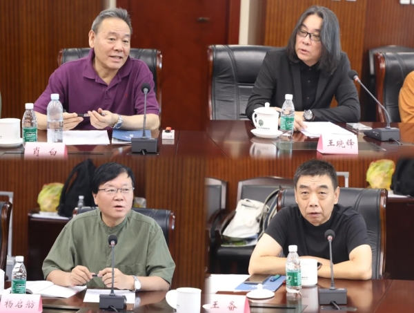 参加采风创作的音乐家肖白、王晓锋、杨启舫、王备交流创作感想