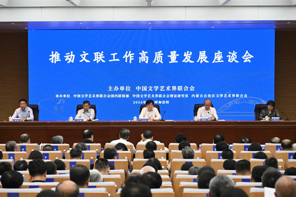7月22日至24日,推动文联工作高质量发展座谈会在内蒙古呼和浩特召开。图为座谈会现场
