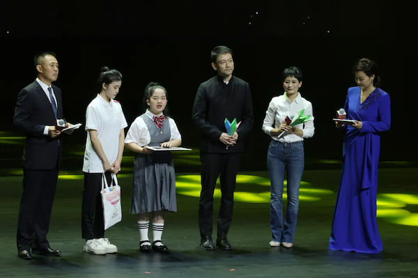 之后,视障小朋友范淼来到舞台上为主播送上了亲手制作的折纸百合花,“虽然我不知道你们的长相,但是你们的声音就是最好的见证。你们就像天使,让我们知道电影的好看和世界的美丽。”导演郭帆也在现场宣布将制作《流浪地球》的无障碍版本,让视障观众也能与“佳片有约”。