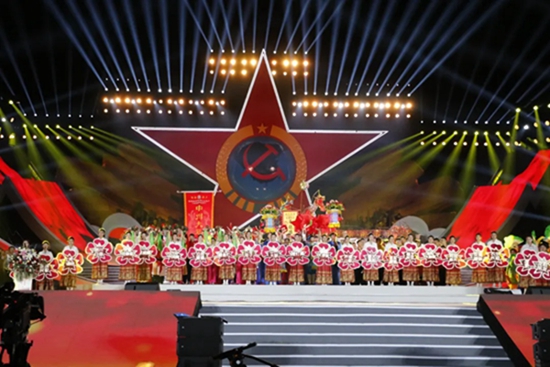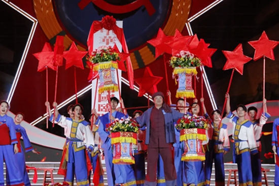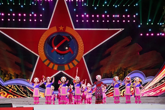 在中华人民共和国成立75周年、中央红军长征出发90周年之际,10月10日,第十四届中国民间艺术节开幕式文艺晚会在江西瑞金苏维埃纪念园红五星广场举办。