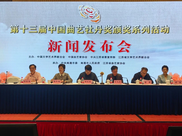10月18日上午,第十三届中国曲艺牡丹奖颁奖系列活动新闻发布会在江苏省南通市国际会议中心召开。