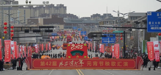 2月12日,正值农历新春和元宵佳节,采风慰问团一行来到“第42届延安过大年”秧歌汇演现场采风。秧歌是延安传统文化的重要组成部分,承载着陕北人民对美好生活的向往和追求。汇演现场,锣鼓喧天,彩绸飞舞,各区县秧歌代表队身着鲜艳的传统服饰,以欢快的舞步和生动的表演展现了陕北人民热情奔放的性情气质,也体现出延安新时代的精神风貌。表演内容丰富多彩,传统秧歌融合现代科技媒介,赢得观众阵阵掌声,也给采风团队员们留下一场中华优秀传统文化传承和发扬的深刻体验。