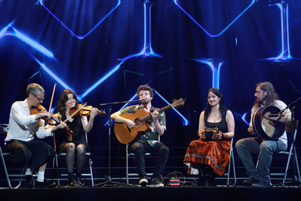 开幕式后,“山海同风——第13届中国国际民间艺术节开幕式文艺晚会”在开场舞蹈《风起岭南》欢腾热烈的氛围中拉开帷幕,一曲《琼花焕彩》音韵婉转,尽显粤剧百年风雅,醒狮随律腾挪闪扑,尽展南狮精神气象,岭南文化瑰丽双璧音画交织,喜迎五洲宾朋。