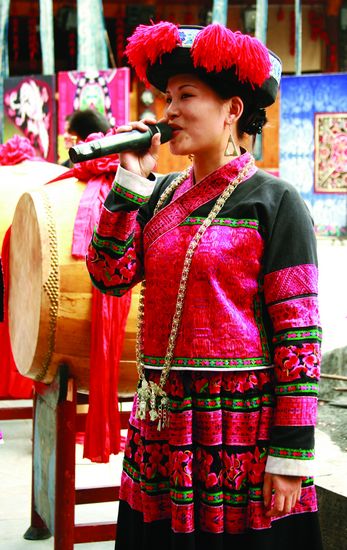 第五代“鼓王”黄娟在家乡人眼里则是个“洋学生”——黄娟是外语专业的大学生,能说一口较为流利的英语。与前四代“苗鼓王”相比,黄娟的知识水平、谈吐风度、气质相貌都有所提升,树立了新一代苗鼓王的形象。黄娟是在2005“中国鼓文化节”上,力压强手,一举夺魁,被称为第五代中国“鼓王”。很多人问黄娟,一个苗家出来的现代大学生为什么选择以“跳鼓舞”为业。“走出苗寨是为了学知识,学知识是为了回到家乡作贡献,我希望能通过我的表演,让更多人了解苗族的历史,了解苗族的文化。苗寨和苗鼓是我生命的根”。黄娟这样说。