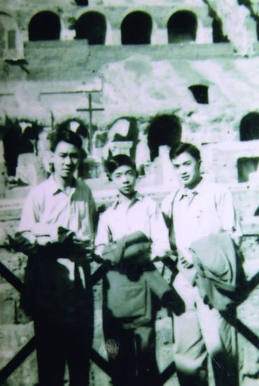 1950年,许渊冲(左一)与法兰西学院院士程抱一兄弟在罗马
