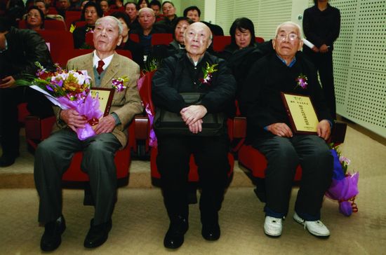 许渊冲(左一)在翻译文化终身成就奖颁奖现场