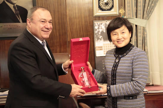 On the afternoon of December 4 local time, prior to the Closing Gala Performance of 2012 Chinese Culture Year in Turkey jointly sponsored by CFLAC, Chinese Ministry of Culture, Chinese Embassy in Turkey and Turkish Ministry of Culture and Tourism, Madame Yang Chengzhi, Vice President of CFLAC, headed a 5-member delegation to pay a special visit to Turkish Ministry of Culture and Tourism. Mr. Kemal Fahir Genç, deputy minister, met with the delegation, and both parties held a pleasant and friendly talk.