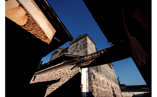 The ancient castle in Shixing County in North Guangdong ought to beone of the Chinese type and has a special name “Weilou”. Having origin from “Wubao” in Eastern Han Dynasty (A.D. 25-220), such “Weilou” underwent a rapid development in Tang and Song Dynasties and entered its peak time in Ming and Qing Dynasties. Its main materials, namely soil, sand, brick, stone, wood and tile, were all drawn on local basis and were laid together through a mixture of clay, brown sugar, glutinous rice paste, bamboo slice, Trinity earth and thatch. “Weilou” normally has an average area of over 100 square meters, plane shapes of rectangle, square, double parallel line, cross, homocentric square and other combined or complicated formality, and three to five storeys. The wall of “Weilou” can be as thick as 8.24 meters or as thin as 35 centimeters with a fortified capability against attack from homemade pistol or cannon. Several holes were drilled on the surface over the first floor for observation or shooting and inside halls, bedrooms, kitchens, grain storage room, mill, faggot room, livestock room, ammunition storehouse, well and toilets were available for daily use and defense. Local people usually nickname such castles as “cannon tower”, “corner tower”, “arrow tower” or “blockhouse”.