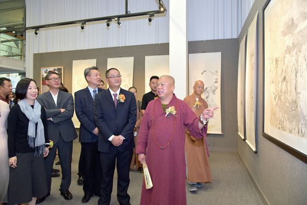 Master Monk Yue Zhao Ushered in the Dignitaries to View the Exhibition