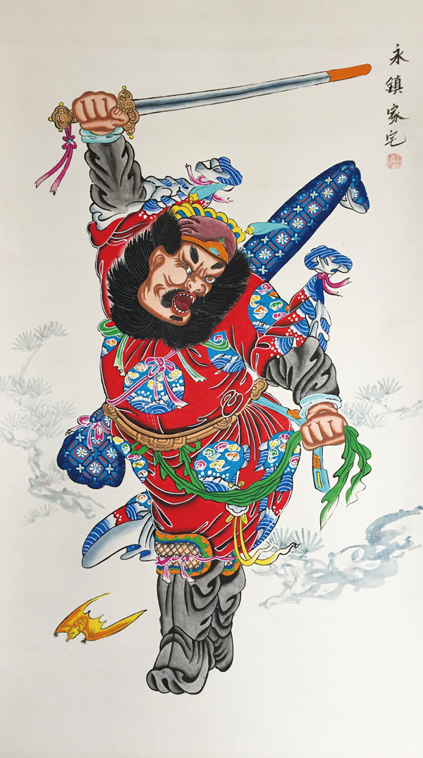 As “Rebel Kid” was not a native in Yangjiabu Village, his works were indeed rare. In March 2005, Yangjiabu NYP Academy of Weifang City and Tongshunde Gallery of Centennial History succeeded in duplicating this giantNYP 108 Outlaws of the Marsh. The pattern was provided by Ma Zhiqiang, expert on NYP research, the draft was repainted by Ji Naicang, head of NYP Institute in Yangjiabu and the block made by Yang Luoshu, heir of Tongshunde Gallery, and Yang Kechen, master of NYP engraving.