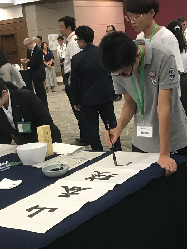 Oota Chihiro, a student of grade three of high school who has won "Lanting New Star Award" by CCA, was one of the 14 delegates from Japan. As for others, they are all winners of nationwide calligraphy competitions in Japan in 2017 and thusproven as blessed with outstanding talents in calligraphy. As for Chinese side, the 14 attendees were all students of elementary and secondary schools from Chaoyang, Haidian and Dongcheng Districts of Beijing. Though the youngest was only at the age of eleven, they were invariably qualified with a solid foundation of calligraphy.