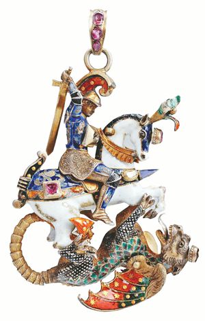 Pendant (late 19th century, silver guilt, enamel,diamond, garnet) in collection of Hungarian NationalMuseum, Budapest
