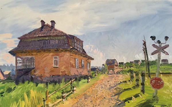 写生期间,中国的艺术家分别走访了利沃夫、喀尔巴阡山、基辅三地,并邀请当地美术家共同交流,不但与之增进友谊,也使得两种绘画思路得到碰撞,擦出了奇妙的艺术火花。对于中国的画家来说,乌克兰是陌生的,而作为著名的文化遗产城市,利沃夫拥有极为丰富的文化遗产,其密集的古典建筑群激发了他们的创作灵感。当中国的审美品格和乌克兰的古典气质相遇,《晨曦中的利沃夫》《利沃夫市政广场》《老火车站》等作品便弥漫着一种别致的审美情调,在写实中蕴含着虚化的趋向。作为“客人”,中国的画家多用新奇的视角来看乌克兰,《喀尔巴阡山下的农舍》《洞窟修道院》等作品充满着浓浓的神秘感,其线条和用色都大胆、清奇,像一个个童话故事一般。而《第聂伯之光》《望见第聂伯》等描绘第聂伯河的作品又无比宁静安详,仿佛代表了中国画家对乌克兰母亲河的敬重。相较之下,乌克兰画家笔下的家乡则更多了一份熟悉感。他们更多把关注点投射到小的角落,以小见大,无论是《灰色的小屋》《晚霞》,还是《冬季交响乐》《哥萨克》,都在一景一象中表达了作者对故乡的热爱。两种视角的交织、交流,共同谱写了本次展览中多变而又统一的乌克兰风情。