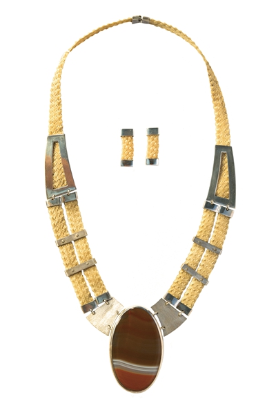 Necklace Earring Set (2008 Silver, Raw Leather and Stone)