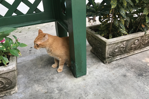 Into the bedroom on the second floor,a large double bed was laid there withlinens, quiltswere clean and elegant. Two white cats were lying on the white quilt, squint and curled up sleeping. Between the two pillows lied a black cat, gentle and lovely. It was discovered later that there were cats in and out of the house, and the bookshelves and sofas became their territories.We followed a narrow path into a small garden. The road was paved with irregular slabs of stone, with English words and years engraved on each block, which has puzzled me. My son told me that this small courtyard was a cats’ cemetery. It turned out that since the arrival of Hemingway, the dead cats were buried here andeach slate was a tombstone with cat’s name and age on it.On the other side of the garden, there are all kinds of cat houses between the trees near the wall as if miniature houses, slope roof, round door hole and etc., which can be described as highend villas for cats. The cats are free to move in the "community", some were lying, some were playing with each other, and some rolling on the ground with much fun. It was very interesting and lovely. A cat was squatting on the lawn, stretching out a leg with head aslant, licking cute paws. But I found that its paw had six toes after careful look, and many here were six-toed cats. The color of the fur on the cat body is quite different, white, black, gray, floral, striped, brown and shiny.According to the staff there, the Hemingway family once raised a six-toed cat. Although there is no snow in Key West all year round, Hemingway gave the cat a name of "snowball".The picture of his youngest son’s holding the "snowball" was hung on the wall of the residence. Now these cats are mostly descendants of "snowball". Why did Hemingway prefer six-toed cats? It is said that this type of cat can bring good luck to navigation. Ernest Hemingway is a tough guy longing for adventure, whose masterpiece The Old Man and the Sea faithfully and courageously reproduced the hardships and dangers of his times, such asgoing to the sea, hunting and watching bullfighting are commonplace. Cats are believed to have nine lives, and that they can make a good fortune. Under the pressure of life and work, cats can make people relaxed mentally, creating a sense of pleasure and preventing cardiovascular diseases.For Hemingway, it may ignite passion and bring inspiration for his literary creation. He also named each cat as a celebrity or star. From his former residence, it can be found that the owner loved cats with most careful care and protection. The cats here were fortunate,enjoying the cherishing and dignity by human beings, also widely considered an ecological civilization.