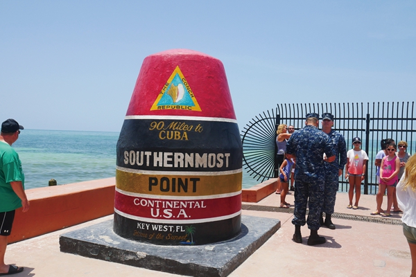 It is my wish to visit the former residence of Hemingway in Florida of the US. Fortunately, my son had been there and played the role of my guide. One day in late May, setting off from Miami, he drove us along the route 1and headed south to the Key West Island for 160 miles and passed over 40 bridges in total, one of which spanned seven miles.Each bridge artfully connected the neighboring islands, like a long string of pearls that have been scattered in the sea. The beautiful coastline and subtropical scenery stretched in the breeze as if we were driving amid the blue ocean.Standing on the long dam, the great vastness of sky and ocean and pretty view were full of our eyes.