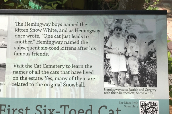 Hemingway’s two sons, Patrick and Gregory took photo with the six-toed cat Snow White.