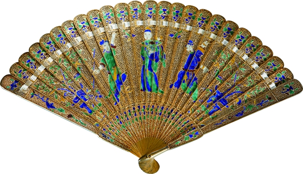 中世纪以来,扇子在欧洲被女性视为必不可少的服装点缀品,因价格昂贵,欧洲宫廷贵妇往往以拥有一柄奢华精美的扇子作为炫耀攀比的资本。外销扇,是在清代中西海上贸易背景下应运而生的外销工艺品。16世纪,东西航线的开通催生了大规模海上贸易。茶、丝绸和瓷器,源源不断从古老的中国输往西方国家,一同漂洋过海的,还有神秘的东方文化。中国趣味和中国风,在西方市场引发了广泛的好奇与向往。中国工匠尤其是广州工匠将“广式”工艺与西洋审美相融合,创作出大量中西风格共融,专供外销的扇子。这些精巧华美的外销扇价格相对低廉,极大满足了西方市场对扇子的热切渴望和需求,因此,“广州制作”成为享誉世界的知名品牌,“中国趣味”成为当时最新时尚的代名词。