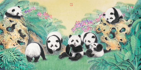 在众多的动物中,刘中对熊猫最是喜爱。动物园中的一瞥,黑黑的眼圈,黑白相间的绒毛,憨态可掬,新鲜又惊奇,从此刘中与熊猫结下不解之缘。刘中对熊猫的痴迷,不亚于齐白石画虾、徐悲鸿画马,谈及原因,刘中说:“大熊猫已在地球上生存了至少800万年,被誉为‘活化石’和‘中国国宝’,它代表着生命的起源,同时又是中国所独有的,黑白相间的毛色很像中国传统文化的太极,温和的形象是和平的象征,可以说,熊猫代表着中国文化、中国精神、中国形象。”