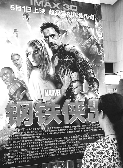 影院《钢铁侠3》海报引路人驻足观看。刘君凤/CFP