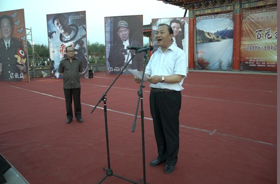 赵实、胡伟、成家竹、夏潮等领导与艺术家共同为“百花放映·情系新疆”大型电影惠民工程暨慰问采风活动揭幕。夏潮、黄永军、索跃分别在开幕式上致辞。
