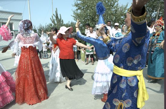 慰问团的领导和艺术家们深入到新疆各族群众中间