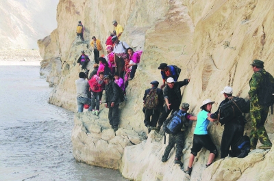 中央电视台关于新疆喀什塔县皮里村干部护送孩子上学的系列报道,在社会上产生了极大反响。图为护送途中令人震撼的一幕。