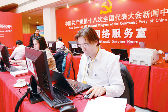 十八大新闻中心成了名副其实的中外“记者之家”
