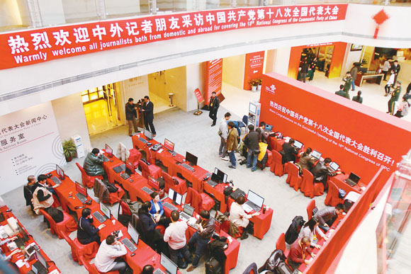 聚焦十八大新闻中心 将十八大信息传向世界