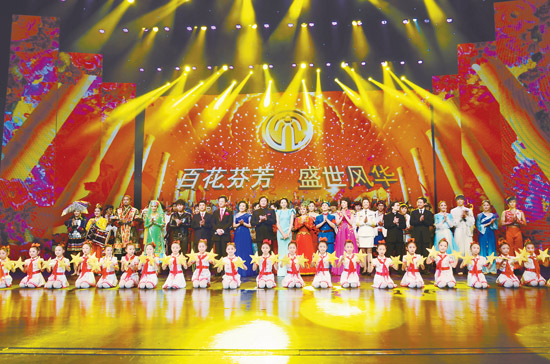 为庆祝中国共产党第十八次全国代表大会胜利召开,积极响应党中央关于推动社会主义文化大发展大繁荣、建设社会主义文化强国的伟大号召,为集中展示近年来我国各个艺术门类的金奖作品和优秀成果,由中国文学艺术界联合会主办、中国舞蹈家协会承办并组织筹划的“百花芬芳 盛世风华”表演艺术精品展演晚会于12月4日在国家大剧院隆重上演。晚会汇聚了近年来在全国各大文艺赛事中获得金奖的佳作精品和优秀艺术家群体,荟萃了音乐、舞蹈、戏曲、诗朗诵、杂技、相声等艺术门类,以昂扬的气势、饱满的色彩、精湛的技艺、声情并茂的表演表达了全国文艺工作者的心声,展现了艺术家们在党中央关于文化强国号召的鼓舞和感召下,努力贴近新生活,热情讴歌新时代,积极践行社会主义文艺主旋律创作的精神风采。