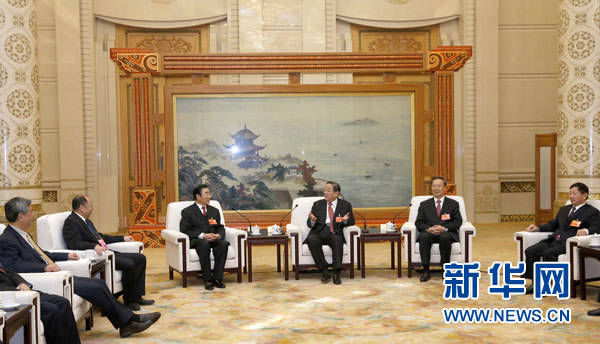 中央书记处书记、全国政协副主席杜青林,全国政协副主席兼秘书长张庆黎等一同会见。