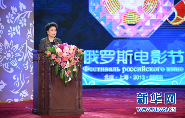 5月27日晚,“2013年俄罗斯电影节”在北京人民大会堂开幕,中共中央政治局委员、国务院副总理刘延东出席并致辞。 新华社记者 李鑫 摄