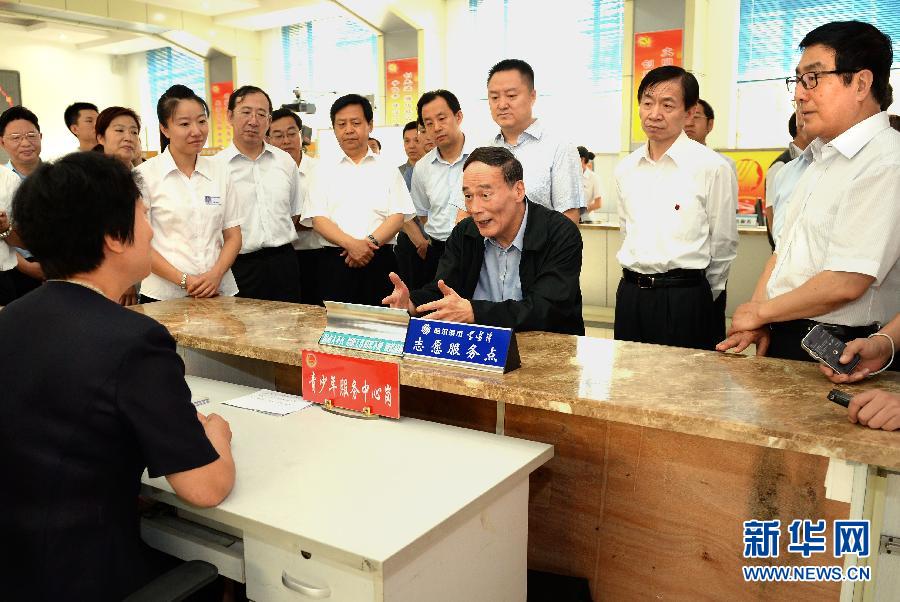 按照中央开展党的群众路线教育实践活动安排,中共中央政治局常委近期分别到各自的第一批教育实践活动联系点调查研究、了解情况,指导教育实践活动开好头、起好步。这是7月9日,王岐山在黑龙江哈尔滨道里区抚顺街道社区调研。 新华社记者刘建生摄