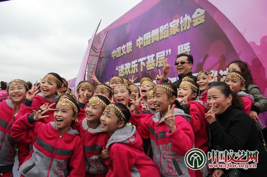 贵阳小朋友高兴地与中国舞协舞蹈艺术家合影中国艺术报记者乔燕冰摄
