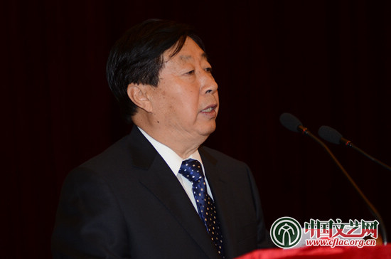 中国美协分党组副书记、秘书长刘健宣读了各界对中国美术家协会第八次全国代表大会召开的贺信 中国文艺网 单鸣 摄