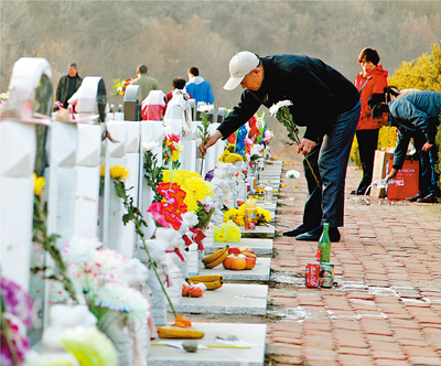 为避免烧纸带来空气污染和火灾隐患,山东威海在全市范围内推行“烧纸换鲜花或树苗”活动,让居民用低碳方式祭奠亲人。于启波摄 (新华社发)