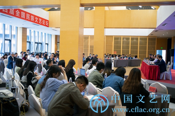 意娜、袁智忠、毕艳君、李世武、范建华、张泉、吴长青、邱振刚、刘洋、吴帮雄、杨静静等11位嘉宾分别围绕“时代精神对民族文艺的深刻影响”“时代性与民族性共生的审美特征”“民族文艺与时代精神有机结合的途径和桥梁”“新时代民族文艺的传承和创新”“新时代民族文艺的责任与担当”“以民族文艺助力中国式现代化”等话题展开讨论并作交流发言。
