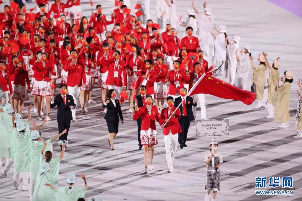 7月23日,中国体育代表团在东京奥运会开幕式上入场。新华社记者郑焕松 摄