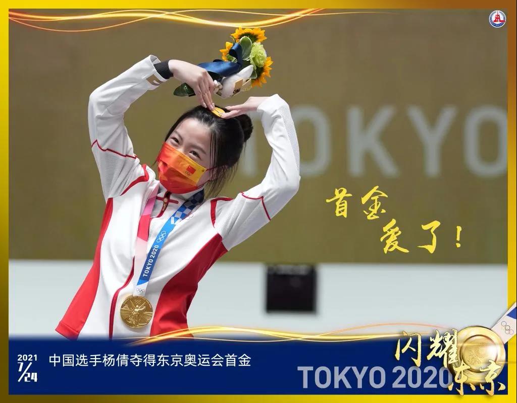 7月24日,在东京奥运会射击女子10米气步枪决赛中,中国选手杨倩夺得冠军,拼下东京奥运会首枚金牌。新华社记者 鞠焕宗 摄,制图宋彦桦