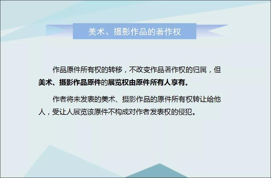 答:张某创作的国画属于《著作权法》意义上的美术作品,按照法律规定,美术馆购买收藏后,就成为画作的所有权人,有权将作品进行展览。不过由于作品原件所有权的转移,不改变作品著作权的归属,该画除原件展览权之外的其他著作权都属于画家张某所有,美术馆要把画作制作成明信片,必须取得著作权人张某的授权,否则就构成侵权。